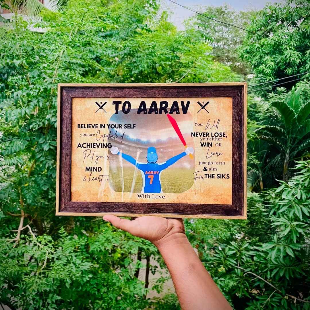 A frame that captures the excitement of cricket and makes a thoughtful, personalized gift for birthdays, achievements, or just because!
