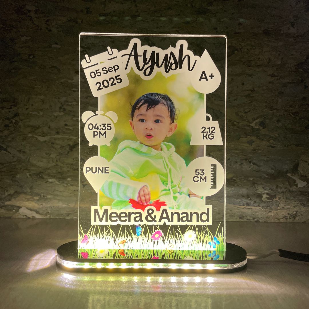 LittleGlow™ is a personalized LED photo frame that captures your baby’s precious details – name, birth date, weight, and photo – all in a glowing keepsake. Perfect for nursery décor or as a heartfelt gift, it adds a calming glow while keeping memories alive forever.